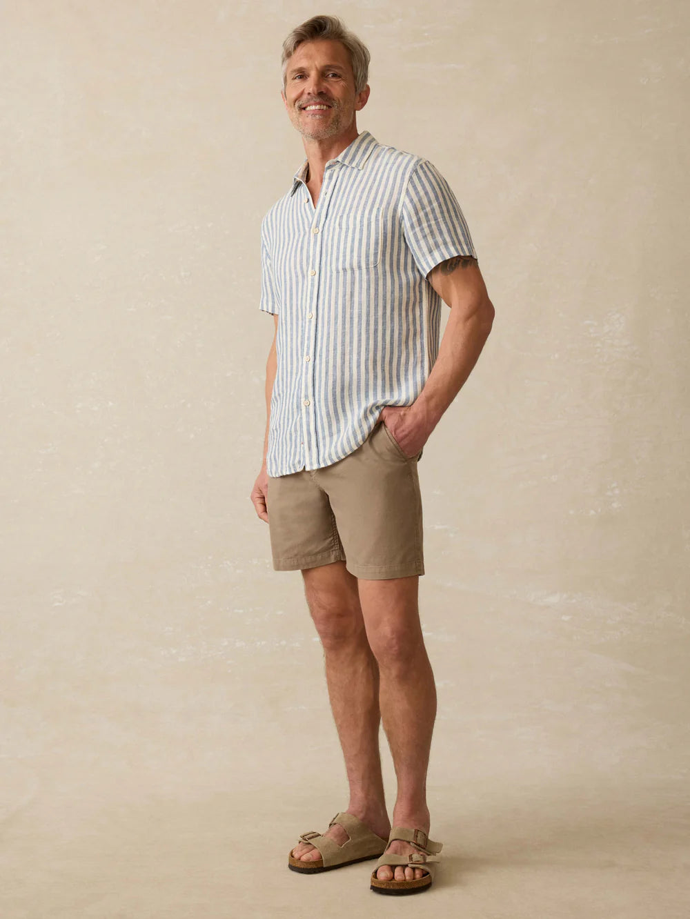 By Faherty. The Essential Short is made for chilling out and kicking back, but can still look as dressy as you need it to. The fabric is a cotton linen blend that’s based on our bestselling Stretch Terry 5-Pocket Pants — super soft, perfect stretch, and a little extra breathability and comfort for warm, sunny days. Think of this as your all-purpose short: part tailored, part lounge, and totally essential.