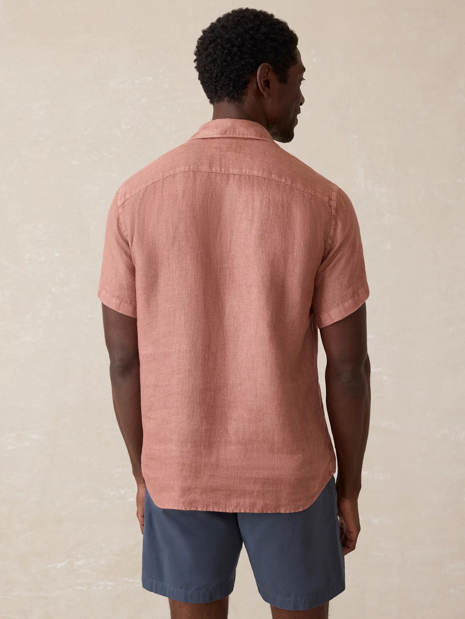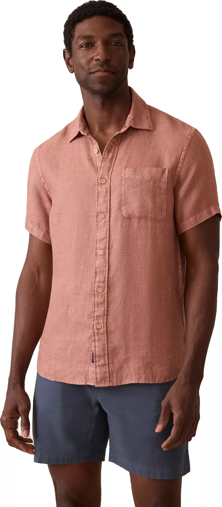 Faherty Palma Linen Short Sleeve Shirt in Cedar Rose