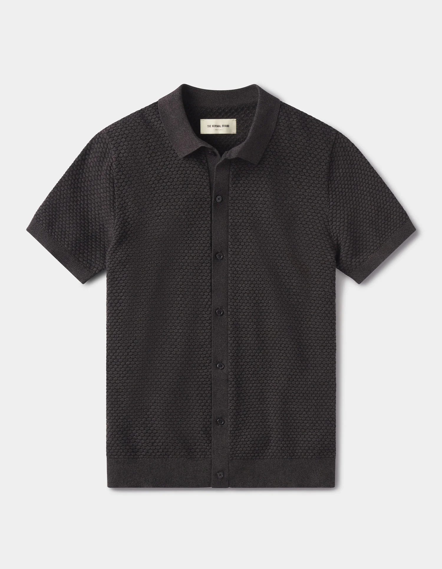 The Normal Brand Robles Knit Jacquard Button Up - Charcoal